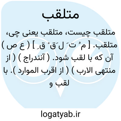لغت نامه دهخدا متلقب. [ م ُ ت َ ل َق ْ ق ِ ] ( ع ص ) آن که با لقب شود. ( آنندراج ) ( از منتهی الارب ) ( از اقرب الموارد ). با لقب و ملقب و لقب دار. ( ناظم الاطباء ). و رجوع به تلقب شود.