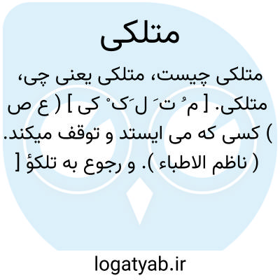 متلکی. [ م ُ ت َ ل َک ْ کی ] ( ع ص ) کسی که می ایستد و توقف میکند. ( ناظم الاطباء ). و رجوع به تلکؤ [ ت َ ل َ ک ک ُ ءْ ] شود.