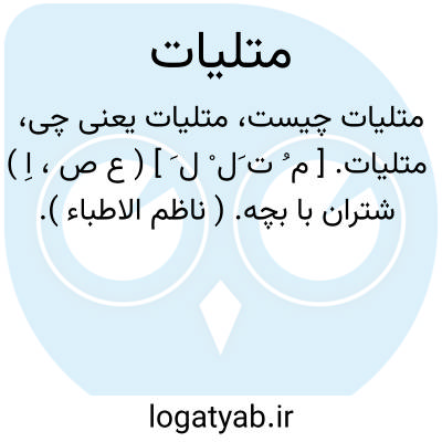 متلیات. [ م ُ ت َل ْ ل َ ] ( ع ص، اِ ) شتران با بچه. ( ناظم الاطباء ).