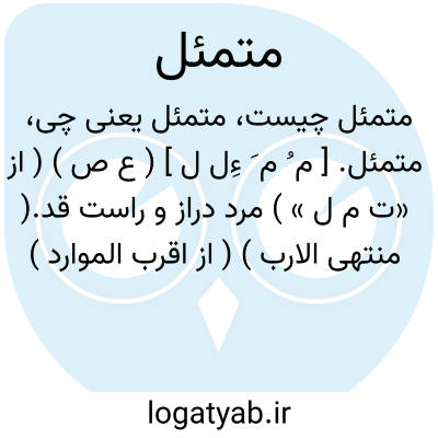 لغت نامه دهخدا متمئل. [ م ُ م َ ءِل ل ] ( ع ص ) ( از «ت م ل » ) مرد دراز و راست قد.( منتهی الارب ) ( از اقرب الموارد ) ( از محیطالمحیط ).