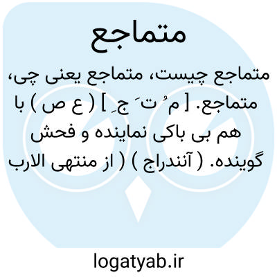متماجع. [ م ُ ت َ ج ِ ] ( ع ص ) با هم بی باکی نماینده و فحش گوینده. ( آنندراج ) ( از منتهی الارب ). متماجن. گستاخ و بی ادب و بی شرم و فحاش به همدیگر. ( ناظم الاطباء )( از اقرب الموارد ). و رجوع به تماجع و تماجن شود.