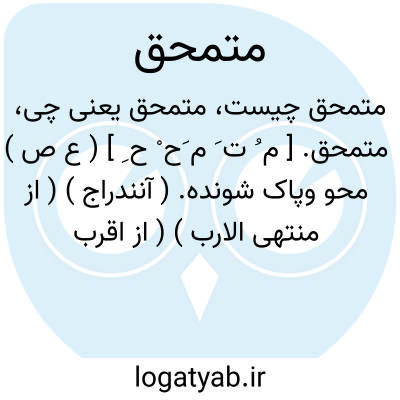 متمحق. [ م ُ ت َ م َح ْ ح ِ ] ( ع ص ) محو وپاک شونده. ( آنندراج ) ( از منتهی الارب ) ( از اقرب الموارد ). محو شده و باطل شده. ( ناظم الاطباء ). || گم گشته و کاسته شده. || سوخته شده. ( ناظم الاطباء ) ( از منتهی الارب ). رجوع به تمحق شود.