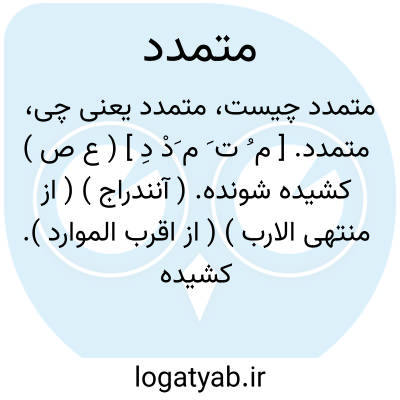 متمدد. [ م ُ ت َ م َدْ دِ ] ( ع ص ) کشیده شونده. ( آنندراج ) ( از منتهی الارب ) ( از اقرب الموارد ). کشیده شده. ( ناظم الاطباء ). و رجوع به تمدد شود.