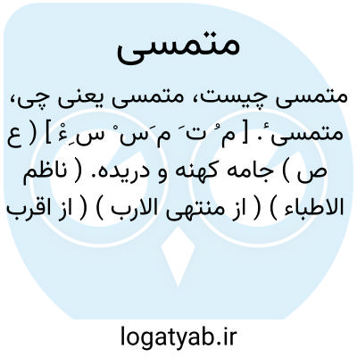 متمسی ٔ. [ م ُ ت َ م َس ْ س ِءْ ] ( ع ص ) جامه کهنه و دریده. ( ناظم الاطباء ) ( از منتهی الارب ) ( از اقرب الموارد ). رجوع به تمسؤ شود.