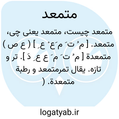 متمعد. [ م ُ ت َ م َع ْ ع ِ ] ( ع ص ) متمعدة [ م ُ ت َ م َ ع ع ِ دَ ]. تر و تازه. یقال تمرمتمعد و رطبة متمعدة. ( ناظم الاطباء ). رطبة متمعدة، خرمای تر و تازه. ( منتهی الارب ) ( از اقرب الموارد ).