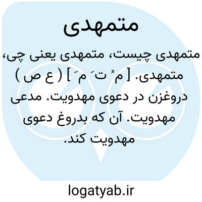 متمهدی. [ م ُ ت َ م َ ] ( ع ص ) دروغزن در دعوی مهدویت. مدعی مهدویت. آن که بدروغ دعوی مهدویت کند. و آن که دعوی مهدویت کند و نباشد. ( یادداشت به خط مرحوم دهخدا ).