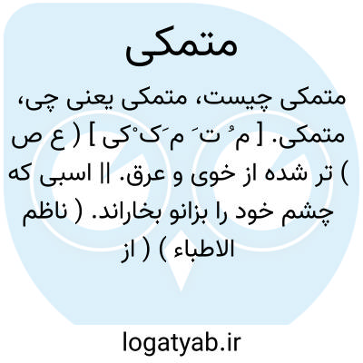 متمکی. [ م ُ ت َ م َک ْکی ] ( ع ص ) تر شده از خوی و عرق. || اسبی که چشم خود را بزانو بخاراند. ( ناظم الاطباء ) ( از منتهی الارب ) ( از اقرب الموارد ). و رجوع به تمکی شود.