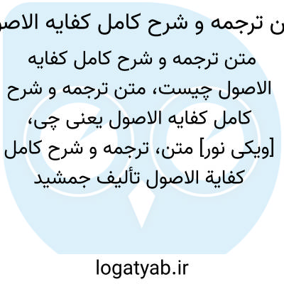 [ویکی نور] متن، ترجمه و شرح کامل کفایة الاصول تألیف جمشید سمیعی، متولد(1335ش.)، به زبان فارسی و در موضوع علم اصول است.
