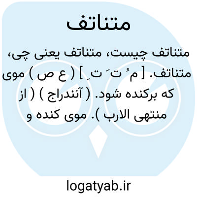 لغت نامه دهخدا متناتف. [ م ُ ت َ ت ِ ] ( ع ص ) موی که برکنده شود. ( آنندراج ) ( از منتهی الارب ). موی کنده و ریخته شده. ( ناظم الاطباء ). و رجوع به تناتف شود.