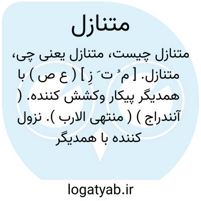 متنازل. [ م ُ ت َ زِ ] ( ع ص ) با همدیگر پیکار وکشش کننده. ( آنندراج ) ( منتهی الارب ). نزول کننده با همدیگر در میان میدان و پیکار کننده با همدیگر. ( ناظم الاطباء ) ( از اقرب الموارد ). رجوع به تنازل شود.
