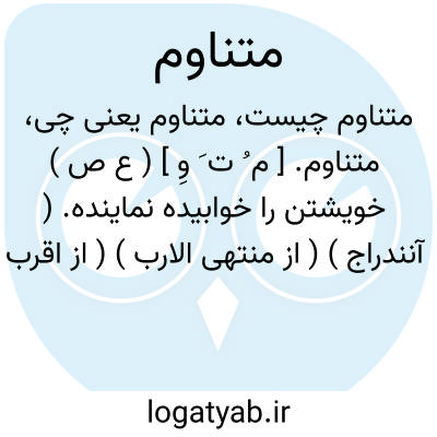 متناوم. [ م ُ ت َ وِ ] ( ع ص ) خویشتن را خوابیده نماینده. ( آنندراج ) ( از منتهی الارب ) ( از اقرب الموارد ). کسی که خویشتن را خوابیده مینمایاند. ( ناظم الاطباء ). و رجوع به تناوم شود.