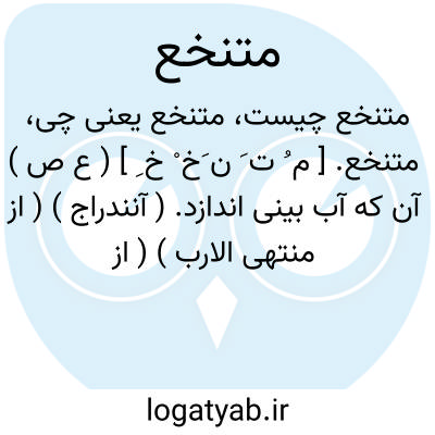 متنخع. [ م ُ ت َ ن َخ ْ خ ِ ] ( ع ص ) آن که آب بینی اندازد. ( آنندراج ) ( از منتهی الارب ) ( از اقرب الموارد ). کسی که آب بینی میاندازد و تف می کند. ( ناظم الاطباء ). و رجوع به تنخع شود.