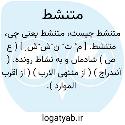 متنشط. [ م ُ ت َ ن َش ْش ِ ] ( ع ص ) شادمان و به نشاط رونده. ( آنندراج ) ( از منتهی الارب ) ( از اقرب الموارد ). شاد و شادمان و خرم. || چست و چالاک. ( ناظم الاطباء ). رجوع به تنشط شود. || رجل متنشط؛ مردی که ستور همراه دارد و هرگاه از سواری ملول شود فرود آید. ( منتهی الارب ) ( آنندراج ) ( ناظم الاطباء ) ( از اقرب الموارد ).