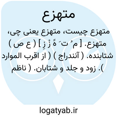 متهزع. [ م ُ ت َ هََ زْ زِ ] ( ع ص ) شتابنده. ( آنندراج ) ( از اقرب الموارد ). زود و جلد و شتابان. ( ناظم الاطباء ). || زشت و ترشروی. ( ناظم الاطباء ) ( از منتهی الارب ) ( از اقرب الموارد ). و رجوع به تهزع شود.
