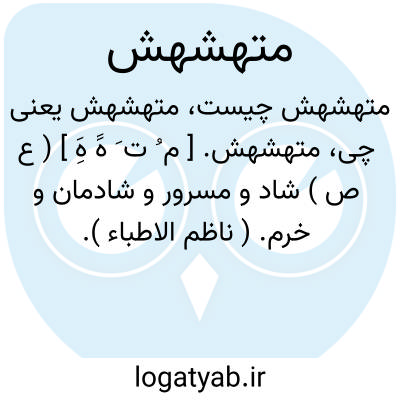 متهشهش. [ م ُ ت َ هََ هَِ ] ( ع ص ) شاد و مسرور و شادمان و خرم. ( ناظم الاطباء ).