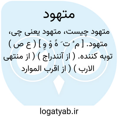 متهود. [ م ُ ت َ هََ وْ وِ ] ( ع ص ) توبه کننده. ( از آنندراج ) ( از منتهی الارب ) ( از اقرب الموارد ). توبه کرده. ( ناظم الاطباء ). التایب. ( مهذب الاسماء ). || جهود شونده. ( آنندراج ). یهودی شده. ( ناظم الاطباء ) ( از منتهی الارب ) ( از اقرب الموارد ) ) ( یادداشت به خط مرحوم دهخدا ). || برگشته از حق. ( ناظم الاطباء ). || کار نیکو نماینده. ( آنندراج ) ( از منتهی الارب ). || آهسته در رفتار. ( ناظم الاطباء ). و رجوع به تهود شود.