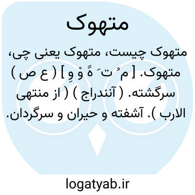 متهوک. [ م ُ ت َ هََ وْ وِ ] ( ع ص ) سرگشته. ( آنندراج ) ( از منتهی الارب ). آشفته و حیران و سرگردان. ( ناظم الاطباء ). متحیر. ( از اقرب الموارد ) ( تاج العروس ) ( محیطالمحیط ). || بی باکانه در آینده در چیزی. ( از منتهی الارب ) ( آنندراج ). مرتکب گناه و خطا شونده. ( از تاج العروس ). || درافتنده در مغاکی. ( منتهی الارب ) ( از آنندراج ). الساقط فی هوة الردی. ( تاج العروس ) ( اقرب الموارد ) ( محیطالمحیط ).