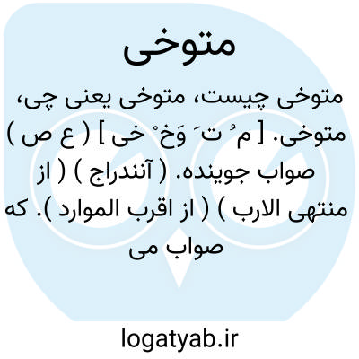 متوخی. [ م ُ ت َ وَخ ْ خی ] ( ع ص ) صواب جوینده. ( آنندراج ) ( از منتهی الارب ) ( از اقرب الموارد ). که صواب می جوید. ( ناظم الاطباء ). || خوشنودی خواهنده. ( آنندراج ) ( از منتهی الارب ). که خوشنودی می خواهد. ( ناظم الاطباء ). و رجوع به توخی شود.