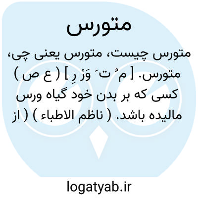 متورس. [ م ُ ت َ وَرْ رِ ] ( ع ص ) کسی که بر بدن خود گیاه ورس مالیده باشد. ( ناظم الاطباء ) ( از منتهی الارب ). و رجوع به تورس شود.