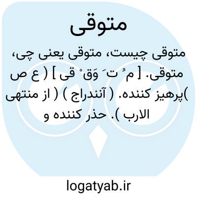 متوقی. [ م ُ ت َ وَق ْ قی ] ( ع ص )پرهیز کننده. ( آنندراج ) ( از منتهی الارب ). حذر کننده و ترسان. ( از اقرب الموارد ). ترسان. و رجوع به توقی شود. || آگاه و هوشیار. ( ناظم الاطباء ).