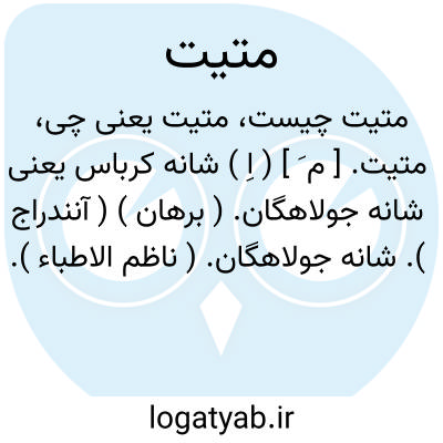 متیت. [ م َ ] ( اِ ) شانه کرباس یعنی شانه جولاهگان. ( برهان ) ( آنندراج ). شانه جولاهگان. ( ناظم الاطباء ).