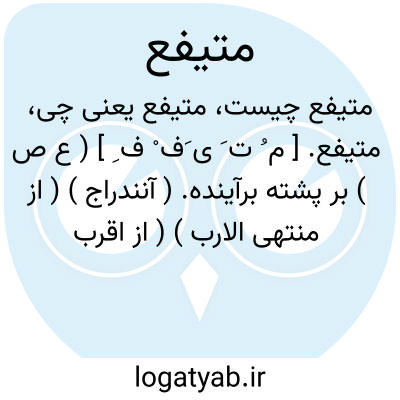 متیفع. [ م ُ ت َ ی َف ْ ف ِ ] ( ع ص ) بر پشته برآینده. ( آنندراج ) ( از منتهی الارب ) ( از اقرب الموارد ). بر کوه و پشته برآمده. || برداشته و افراخته. ( ناظم الاطباء ).