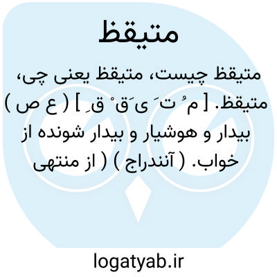 متیقظ. [ م ُ ت َ ی َق ْ ق ِ ] ( ع ص ) بیدار و هوشیار و بیدار شونده از خواب. ( آنندراج ) ( از منتهی الارب ) ( از اقرب الموارد ). بیدار و هوشیار و آگاه و خبردار. زیرک و خردمند و چالاک. ( ناظم الاطباء ):... و خردمند دوربین را مدهوش حیران و احمق غافل را زیرک متیقظ...( کلیله و دمنه چ مینوی ص 105 ).... و آن را که برماگماری متبصری بیدار و متیقظی هشیار و حافظی بطبع صلاح جوی باشد. ( مرزبان نامه ص 176 ). رجوع به تیقظ شود.