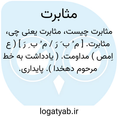 - مثابرت کردن؛ مداومت کردن. پایداری کردن: مدت سه شبانروز محاربت مصابرت نمودند و بر مضاربت مثابرت کردند. ( جهانگشای جوینی ج 2 ص 178 ).