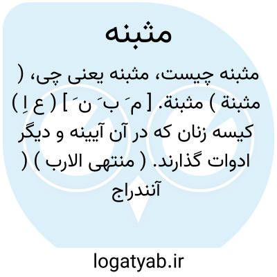 لغت نامه دهخدا ( مثبنة ) مثبنة. [ م َ ب َ ن َ ] ( ع اِ ) کیسه زنان که در آن آیینه و دیگر ادوات گذارند. ( منتهی الارب ) ( آنندراج ) ( ناظم الاطباء ) ( از اقرب الموارد )( از محیطالمحیط ). ج، مَثابِن. ( از اقرب الموارد ).