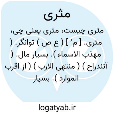 مثری. [ م ُ ] ( ع ص ) توانگر. ( مهذب الاسماء ). بسیار مال. ( آنندراج ) ( منتهی الارب ) ( از اقرب الموارد ). بسیار مال و با ثروت. ( ناظم الاطباء ). || باران رسنده به ثری. ( آنندراج ) ( منتهی الارب ) ( ناظم الاطباء ) ( از اقرب الموارد ). || تر ونمناک. ( از منتهی الارب ) ( آنندراج ) ( ناظم الاطباء ).