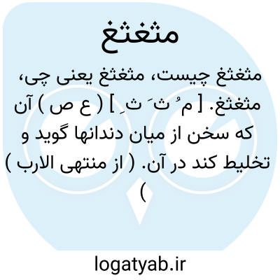 مثغثغ. [ م ُ ث َ ث ِ ] ( ع ص ) آن که سخن از میان دندانها گوید و تخلیط کند در آن. ( از منتهی الارب ) ( آنندراج ) ( از ناظم الاطباء ) ( از محیطالمحیط ).