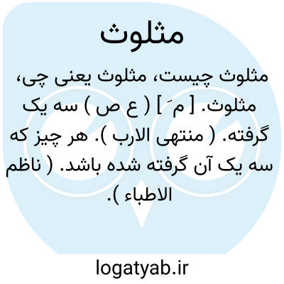 مثلوث. [ م َ ] ( ع ص ) سه یک گرفته. ( منتهی الارب ). هر چیز که سه یک آن گرفته شده باشد. ( ناظم الاطباء ). چیزی که یک سوم آن گرفته شده باشد و منه مال مثلوث. ( از اقرب الموارد ). || سه تو. ( مهذب الاسماء ). سه توی. ( تفلیسی ). رسن سه تاه. ( منتهی الارب ). ریسمان سه تا و سه لا. ( ناظم الاطباء ) ( از اقرب الموارد ).