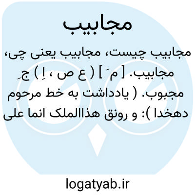 لغت نامه دهخدا مجابیب. [ م َ ] ( ع ص، اِ ) ج ِ مجبوب. ( یادداشت به خط مرحوم دهخدا ): و رونق هذاالملک انما علی الفتیان والاحابش المجابیب. ( رحله ابن جبیر، یادداشت ایضاً ) رجوع به مجبوب شود.