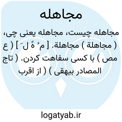 ( مجاهلة ) مجاهلة. [ م ُ هََ ل َ ] ( ع مص ) با کسی سفاهت کردن. ( تاج المصادر بیهقی ) ( از اقرب الموارد ). با کسی جهالت کردن. ( المصادر زوزنی ). نبرد کردن کسی را در نادانی. ( از منتهی الارب ) ( از ناظم الاطباء ) ( آنندراج ).