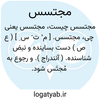 لغت نامه دهخدا مجتسس. [ م ُ ت َ س ِ ] ( ع ص ) دست بساینده و نبض شناسنده. ( آنندراج ). و رجوع به مُجتَس شود.