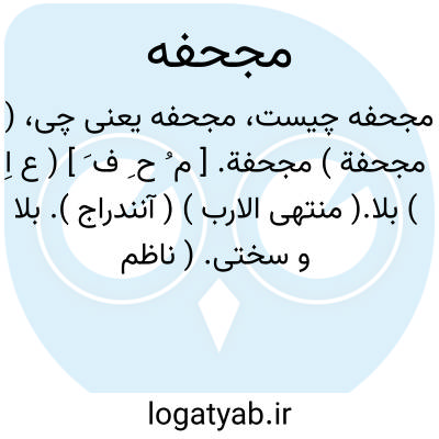 لغت نامه دهخدا ( مجحفة ) مجحفة. [ م ُ ح ِ ف َ ] ( ع اِ ) بلا.( منتهی الارب ) ( آنندراج ). بلا و سختی. ( ناظم الاطباء ).مصیبت. ( اقرب الموارد ). || ( ص ) سنة مجحفة؛ سال قحط. ( منتهی الارب ) ( آنندراج ) ( ناظم الاطباء ).