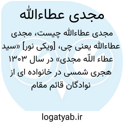 [ویکی نور] «سید عطاء اللّه مجدی» در سال 1303 هجری شمسی در خانواده ای از نوادگان قائم مقام فراهانی در روستای «خانقاه شراء» اراک متولد شد.