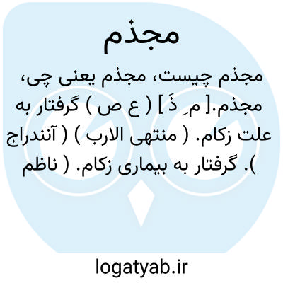مجذم.[ م ِ ذَ ] ( ع ص ) گرفتار به علت زکام. ( منتهی الارب ) ( آنندراج ). گرفتار به بیماری زکام. ( ناظم الاطباء ).