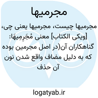 [ویکی الکتاب] معنی مُجَرِمِیهَا: گناهکاران آن(در اصل مجرمین بوده که به دلیل مضاف واقع شدن نون آن حذف گردیده است. کلمه جرم بطوری که راغب در مفرداتش گفته در اصل به معنای چیدن میوه از درخت است، و باب افعال آن یعنی أجرم به معنای صاحب جرم شدن است، ولی به عنوان استعاره در هر کار ناپسن...