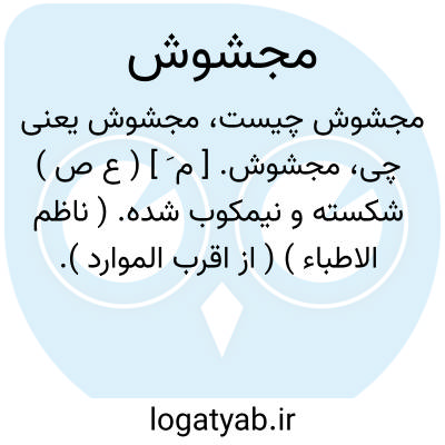 مجشوش. [ م َ ] ( ع ص ) شکسته و نیمکوب شده. ( ناظم الاطباء ) ( از اقرب الموارد ).
