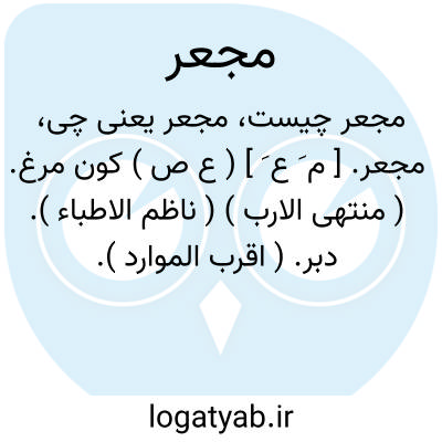 مجعر. [ م َ ع َ ] ( ع ص ) کون مرغ. ( منتهی الارب ) ( ناظم الاطباء ). دبر. ( اقرب الموارد ).
