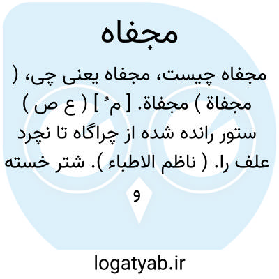 ( مجفاة ) مجفاة. [ م ُ ] ( ع ص ) ستور رانده شده از چراگاه تا نچرد علف را. ( ناظم الاطباء ). شتر خسته و مانده گردانیده و چرانیده نشده. ( از منتهی الارب ) ( از اقرب الموارد ).