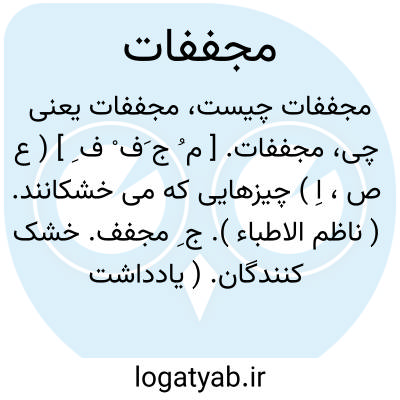 مجففات. [ م ُ ج َف ْ ف ِ ] ( ع ص، اِ ) چیزهایی که می خشکانند. ( ناظم الاطباء ). ج ِ مجفف. خشک کنندگان. ( یادداشت به خط مرحوم دهخدا ). و رجوع به مجفف شود.
