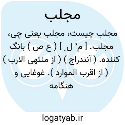 مجلب. [ م ُ ج َل ْ ل ِ ] ( ع ص ) رعد مجلب؛ تندربسیار آواز. ( از منتهی الارب ) ( آنندراج ) ( ناظم الاطباء ). || بانگ کننده. ( آنندراج ) ( از منتهی الارب ) ( از اقرب الموارد ).