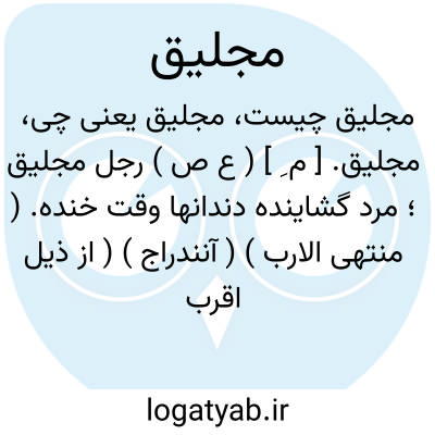 مجلیق. [ م ِ ] ( ع ص ) رجل مجلیق؛ مرد گشاینده دندانها وقت خنده. ( منتهی الارب ) ( آنندراج ) ( از ذیل اقرب الموارد ). مردی که دندانهای وی هنگام خنده نمایان باشد. ( ناظم الاطباء ).