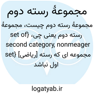 {set of second category, nonmeager set} [ریاضی] مجموعه ای که رسته اول نباشد