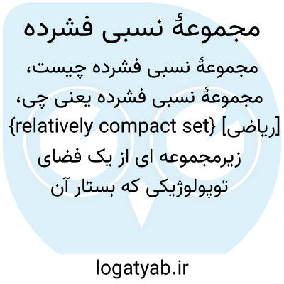 فرهنگستان زبان و ادب {relatively compact set} [ریاضی] زیرمجموعه ای از یک فضای توپولوژیکی که بستار آن فشرده باشد