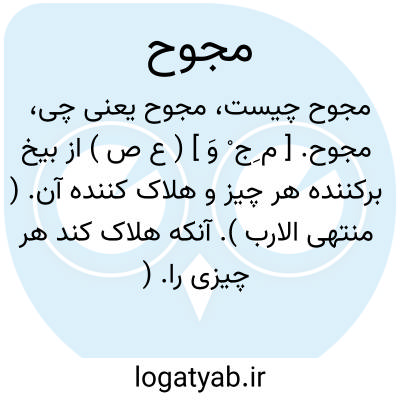 مجوح. [ م ِج ْ وَ ] ( ع ص ) از بیخ برکننده هر چیز و هلاک کننده آن. ( منتهی الارب ). آنکه هلاک کند هر چیزی را. ( ناظم الاطباء ).آنکه از بیخ برکند هر چیز را. ( از اقرب الموارد ).