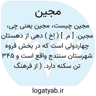 مجین. [ م ِ ] ( اِخ ) دهی از دهستان چهاردولی است که در بخش قروه شهرستان سنندج واقع است و 345 تن سکنه دارد. ( از فرهنگ جغرافیایی ایران ج 5 ).