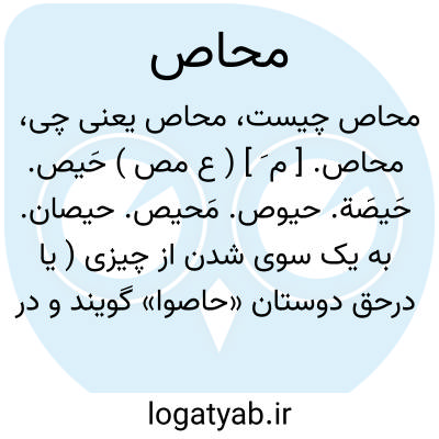 محاص. [ م َح ْ حا ] ( ع ص ) درخشان از برق. || سراب. || الدویةالمحاص؛ دشت که درآن بکوشش تمام راه روند. ( منتهی الارب ) ( ناظم الاطباء ).